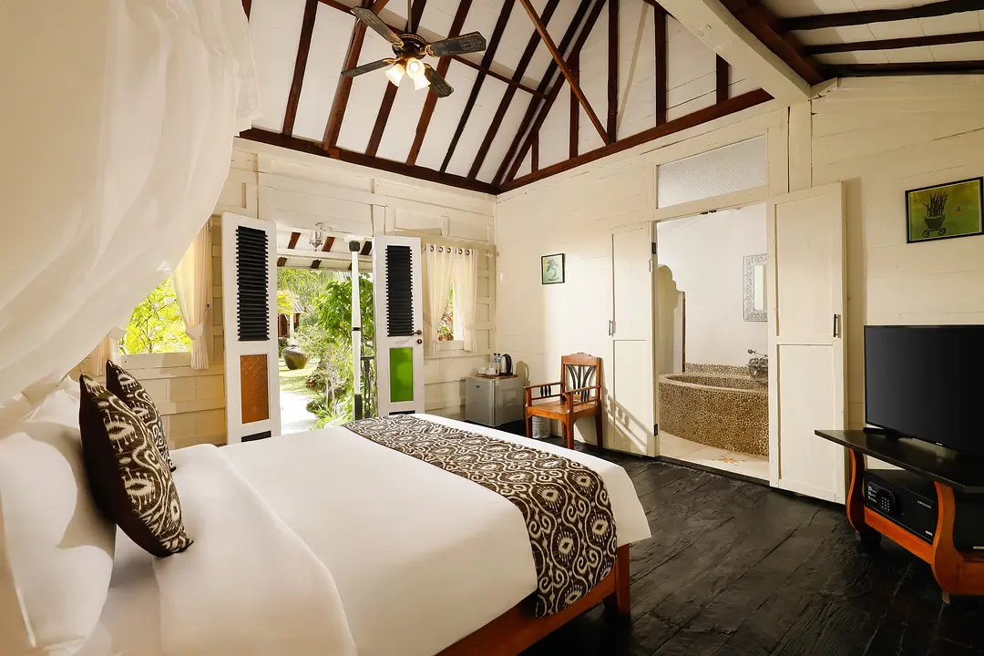Step into a world of tranquility as you enter this charming cottage, thoughtfully crafted with exquisite wooden accents that create an inviting and cozy ambiance. The natural warmth of wood embraces you, promising a stay that feels like a blissful escape to nature’s embrace. Relax on your private terrace, perfect for morning coffee, an evening aperitif, or simply stargazing. Whether seeking romance or peace, Cottage Deluxe offers an enchanting retreat.