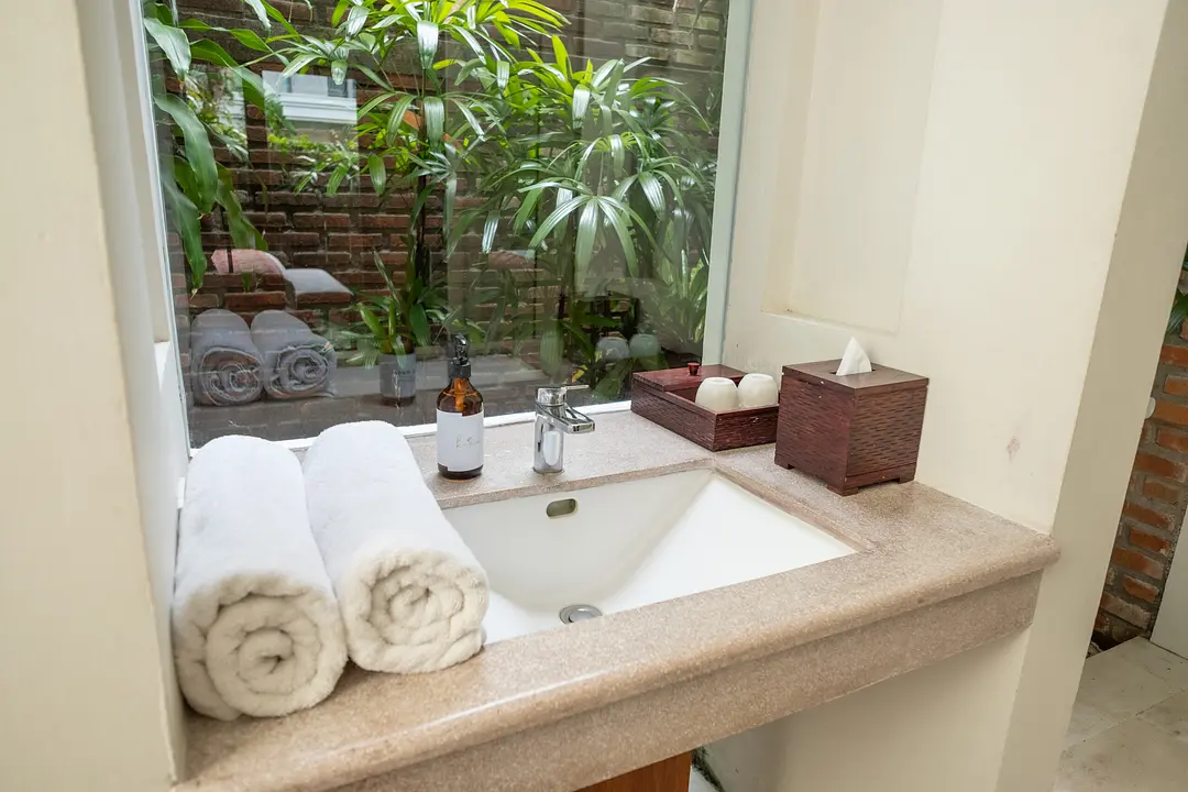 A spacious retreat designed with comfort and tranquility in mind, this suite invites you to unwind the moment you step inside. The luxurious king-sized bed offers a restful haven, while the beautifully crafted semi–outdoor bathroom brings a touch of tropical charm, complete with an indoor shower for everyday ease. Thoughtfully air-conditioned to create a cool and soothing atmosphere, the space blends modern comfort with serene island living. Whether you’re preparing for a day of exploration or settling in for a peaceful night, this suite provides the perfect sanctuary to relax, refresh, and feel completely at home.