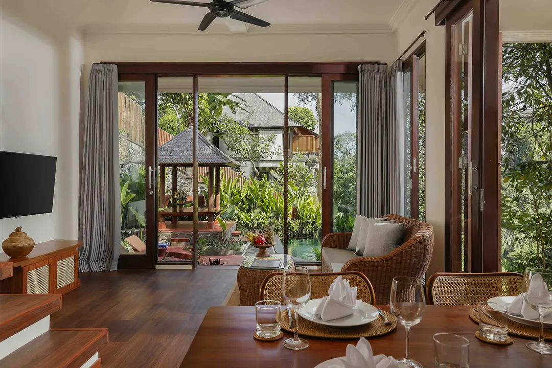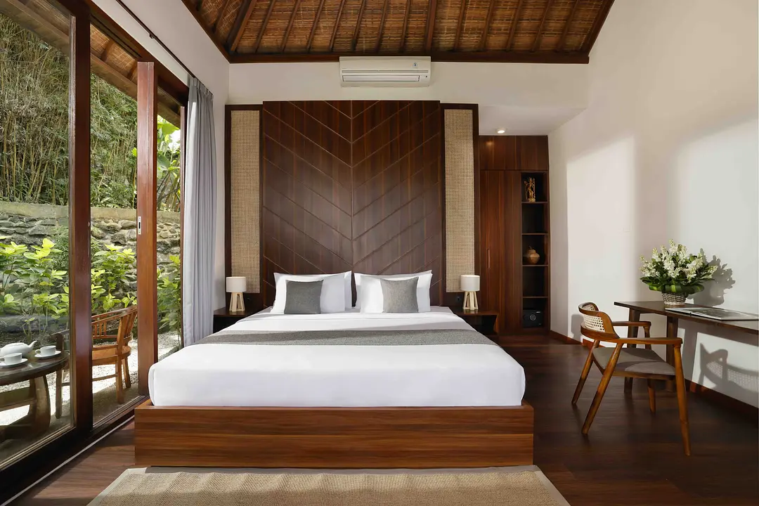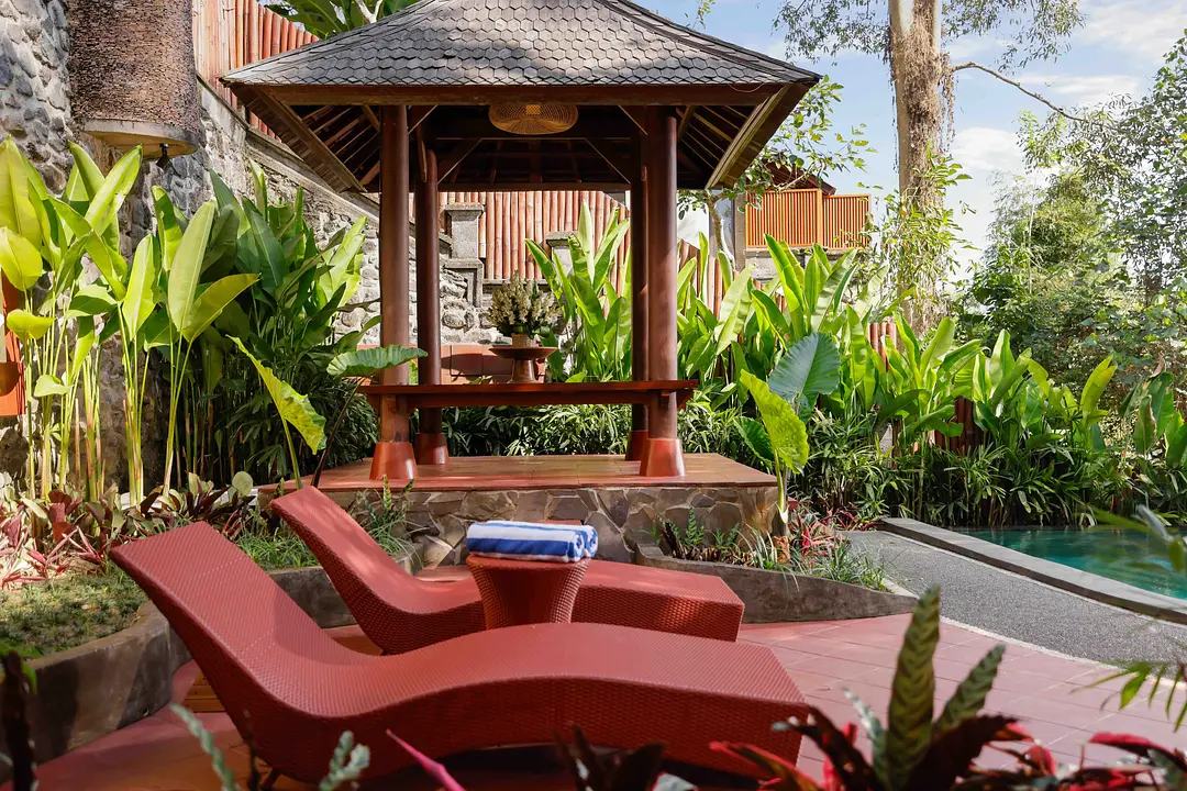 Discover the charm of our Exotic Balinese Villa, designed for ultimate privacy and comfort. These two-story villas feature queen-sized beds and private entrances to each bedroom. Each villa has its own private pool and a fully equipped kitchen, making it ideal for intimate gatherings. The close living room provides a cozy space to relax and unwind.